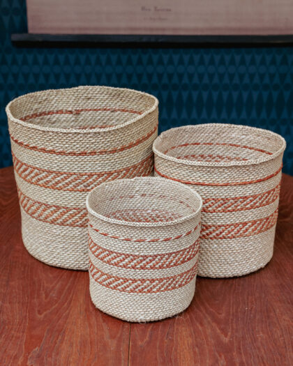 The collective we partner with to produce these baskets supports a group of lead artisans who recruit and train weavers in their communities whilst training in quality control, bookkeeping, logistics and communication. We’re so excited to be working with this flourishing group.