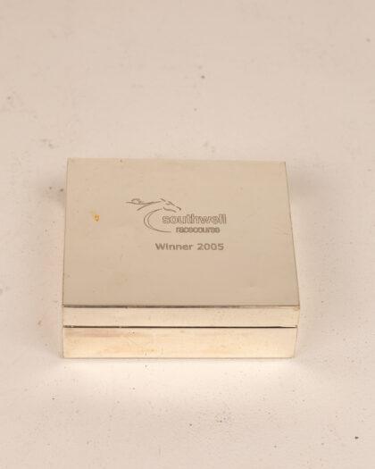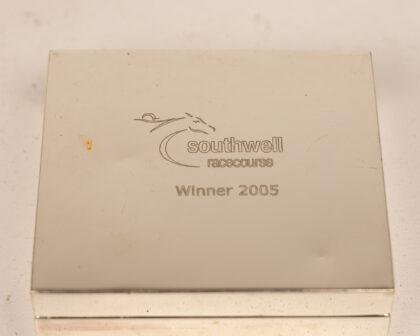 A collectible box commemorating the Southwell Racecourse Winner 2005. Features a sleek design with engravings.