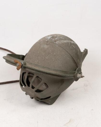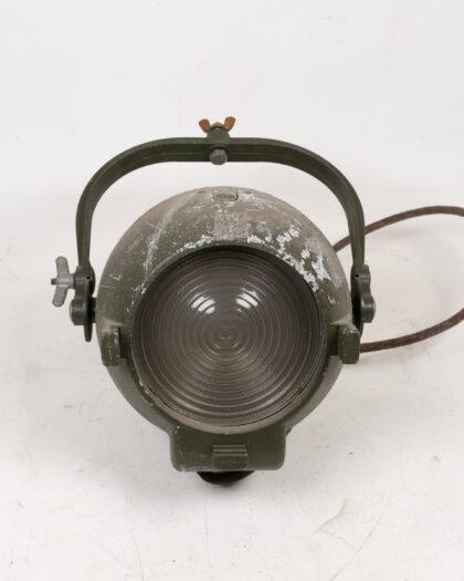 Vintage Strand Electric stage light in olive green. Adjustable bracket, textured lens. Untested. Sold as decorative item.