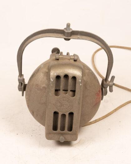 Vintage Strand Electric stage light. Silver finish, adjustable yoke. Untested, shows wear. Ideal for collectors or display.