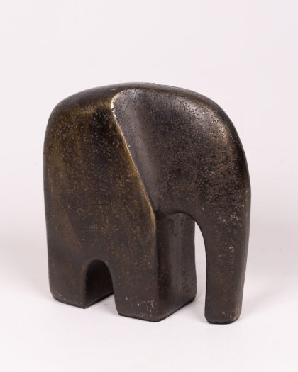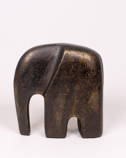 Stylised stone elephant sculpture in black and gold, a modern decorative ornament for contemporary homes.