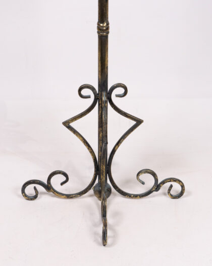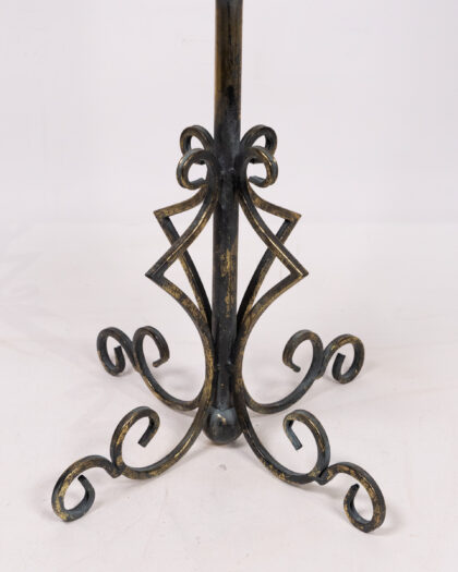 This black candle holder has an ornate base and clear glass hurricane shade. It makes a wonderful addition to home décor.