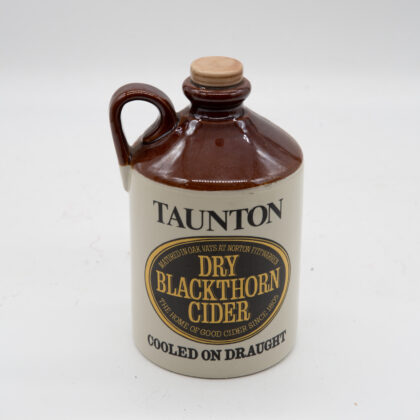 A ceramic flagon used as a pump hood / decoration for Taunton Dry Blackthorn Cider.