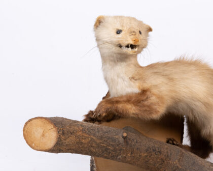 Taxidermy Beech Marten mounted on wood. A unique decor piece for natural history enthusiasts.
