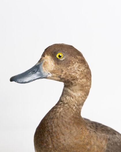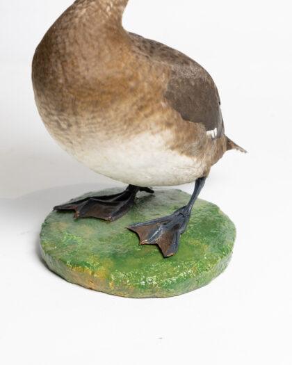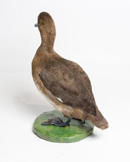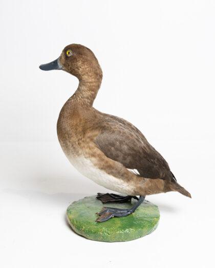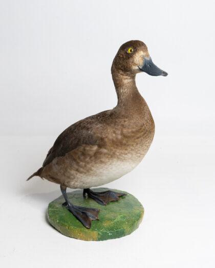 This taxidermy scaup duck is a stunning example of craftsmanship, capturing the intricate details and natural beauty of the species. It is mounted on a green base, making it an excellent display piece for any home or collection. The duck is in excellent condition, showcasing realistic features and vibrant colours. Ideal for decor or educational purposes.