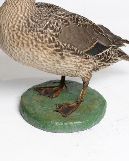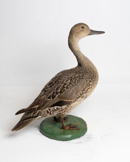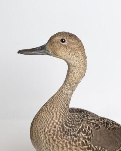 This meticulously crafted taxidermy shoveler duck sculpture captures the essence of natural beauty. Featuring lifelike details, this piece is ideal for display in any home or office setting. The sculpture stands on a sturdy base, making it a stable addition to your collection.