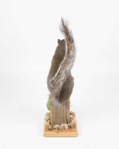 Taxidermy Grey Squirrel with Wooden Base & Faux Plants