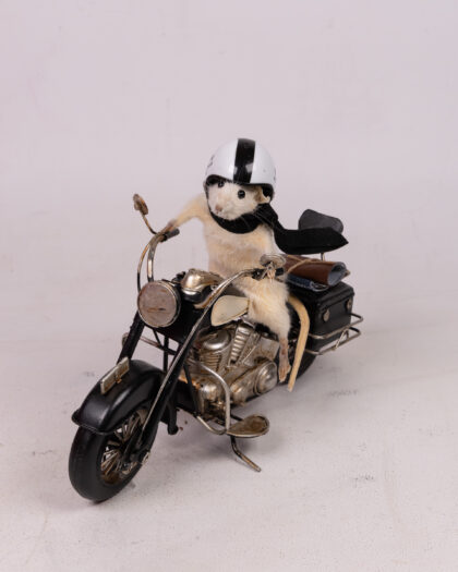 Unique taxidermy mouse in riding leathers. Great gift for motorcyclists or as a quirky home decoration.
