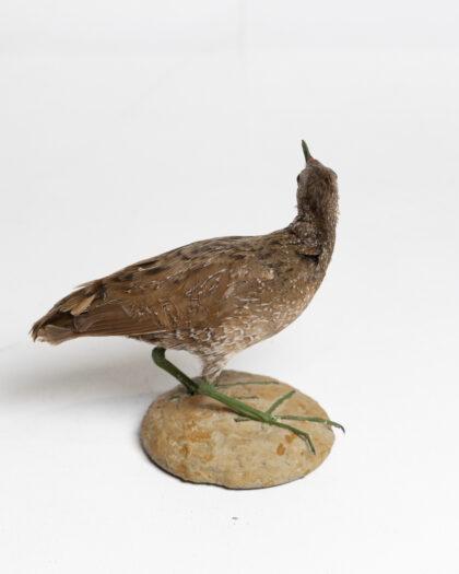 This taxidermy spotted crake is expertly preserved, showcasing realistic details and craftsmanship. Mounted on a sturdy base, it serves as an elegant decorative piece or educational display. The bird features lifelike plumage and a natural posture, making it a captivating addition to any collection or exhibit.