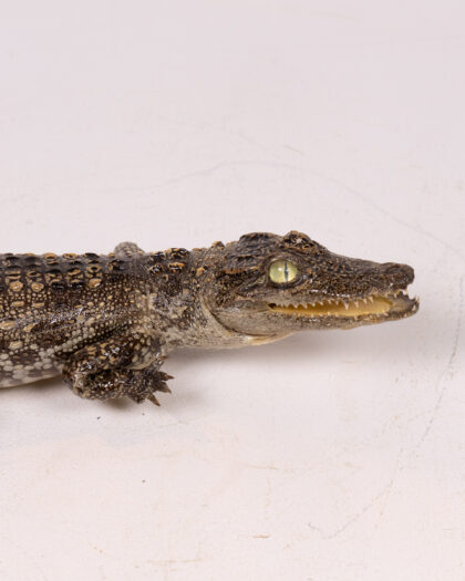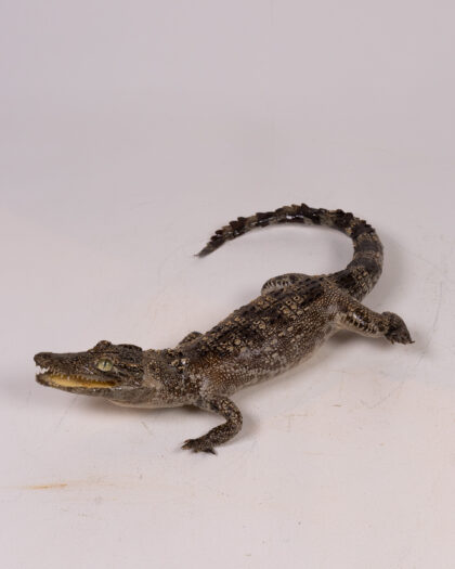 A taxidermy crocodile, good size 53cm nose to tail tip meticulously preserved. The young crocodile retains its natural features, showcasing its textured scales and coloration. Glass eyes provide a lifelike appearance. This piece would be a conversation starter and would add character to any space. A unique addition to a collection of taxidermy or for those seeking a one-of-a-kind home decor item.