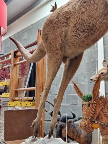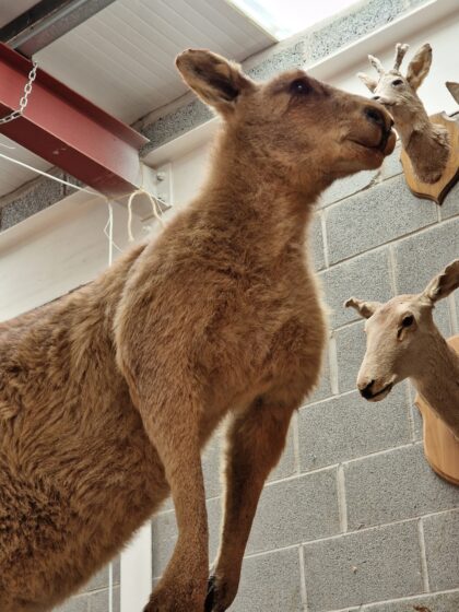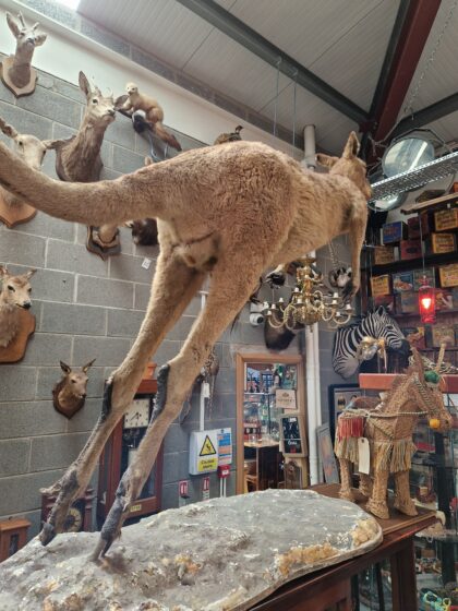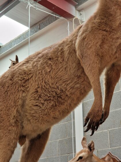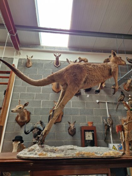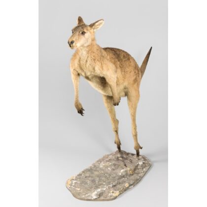 A large, impressive 20th century full mount of a jumping kangaroo (macropodidae).