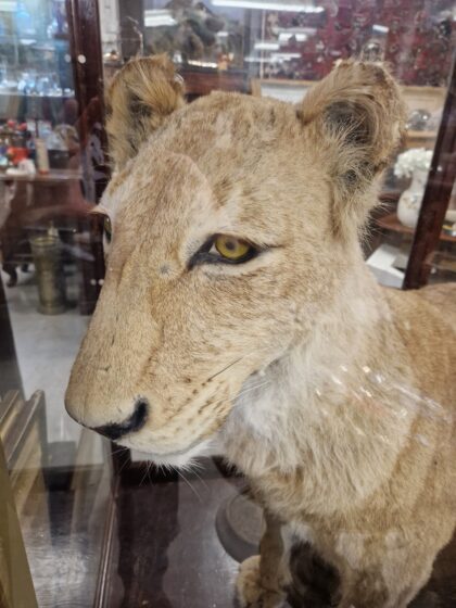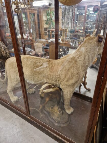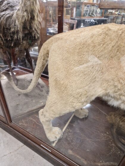 A late 20th century full mount lioness (panthera leo).