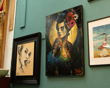 Born in Belfast in 1965, Terry Bradley grew up during The Troubles and found a form of escapism in art. He discovered how drawing calmed his nerves and he was able to lose himself in the complexities of observing people and then recreating them on paper. Bradley’s work often features strong characters who have lived hard lives and show the wounds they carry. Broken noses, scars and tattoos on the men and streaked make up and tear stains on the women, Bradley’s subjects show their vulnerabilities, yet their look remains defiant and challenging.