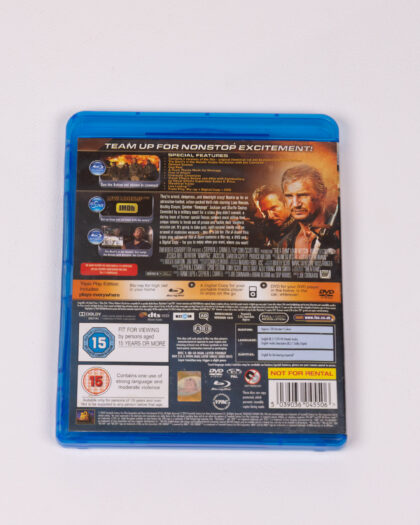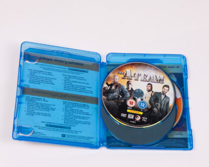 The A-Team - Explosive Extended Edition on Blu-ray disc. This Blu-ray features the action movie The A-Team, starring Liam Neeson, Bradley Cooper, and Quinton 'Rampage' Jackson. This is the explosive extended edition. The disc is contained within its original blue plastic case. The set includes a DVD as well, for playing everywhere.