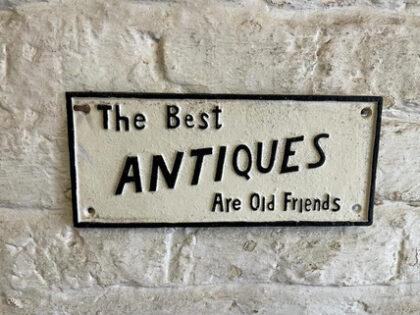 This charming cast iron sign displays the lovely message: "The Best Antiques Are Old Friends". The sign comes with a classic handpainted finish, with the black, raised lettering and border set against a contrast white background. The sign is deliberately distressed to achieve the classic vintage look which is much sought after these days. Four pre-drilled holes make it easy to hang on a wall of your choosing. Sure to be extremely popular with customers of all ages and interests!