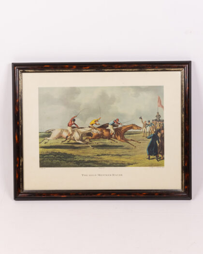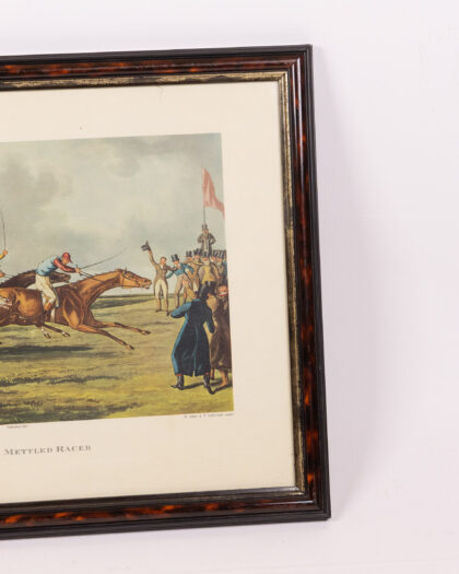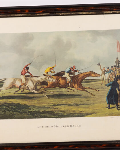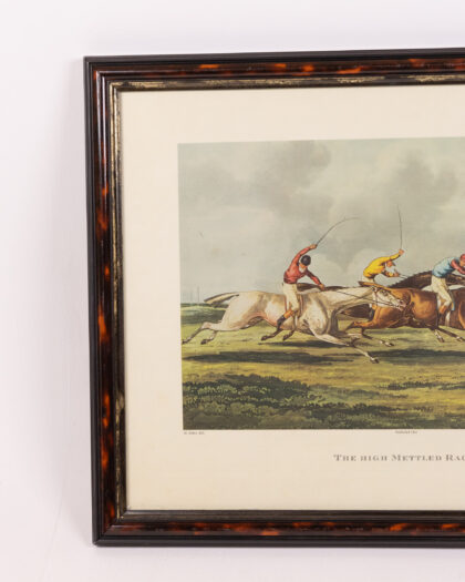 Framed 'The High Mettled Racer' print. After Henry Alken, published 1821, presented in a dark wood frame with gold trim.