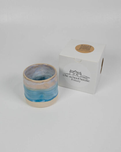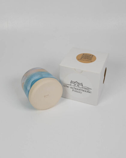 Ceramic mug from The School House Pottery. Features layered colour detail in white, blue and brown. A perfect addition to any home.