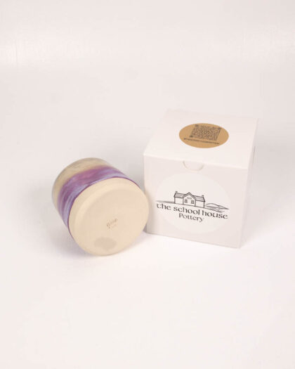 Handmade School House Pottery ceramic mug. Unique purple detail. Perfect for tea, coffee or hot chocolate. Brand new with box.