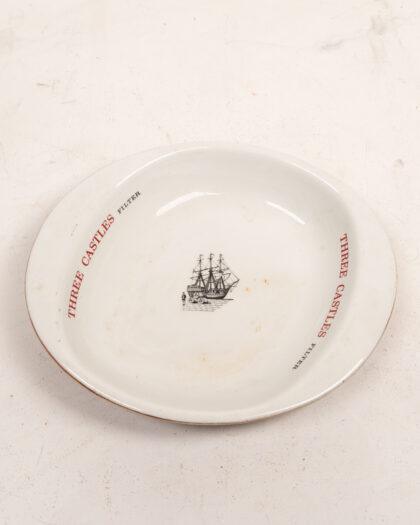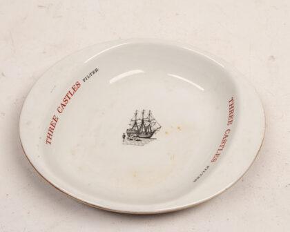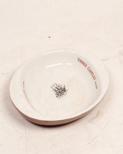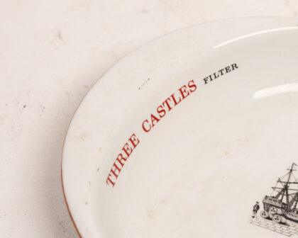 A ceramic ashtray for Three Castles Filter Cigarettes.