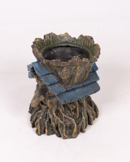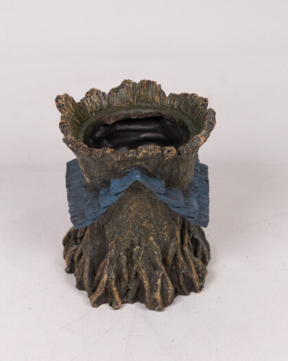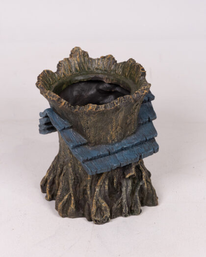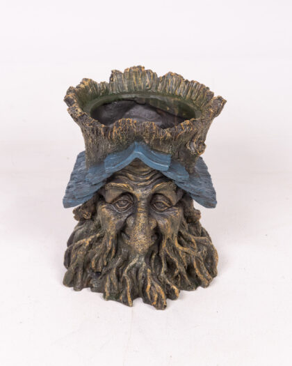 Add a touch of enchantment to your garden with this unique tree spirit planter. The planter features a detailed face with a wood-like texture and blue leaf accents. Perfect for small plants or succulents, this planter brings a whimsical and natural element to any outdoor space. Made from durable material, it is suitable for all weather conditions. This charming planter is sure to be a conversation starter and a delightful addition to your garden decor.