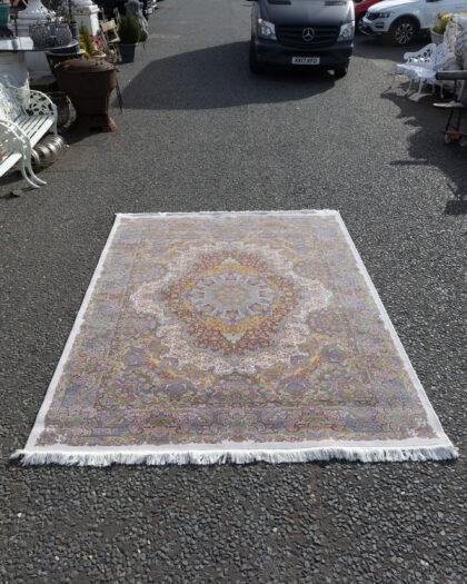This exquisite handwoven Turkish carpet features a vibrant multi-coloured floral pattern, crafted from luxurious bamboo silk by Cavanden & Green. Measuring 265cm x 204cm, this carpet is a stunning addition to any space, offering both elegance and cultural charm. Perfect for adding a touch of sophistication to your home decor.
