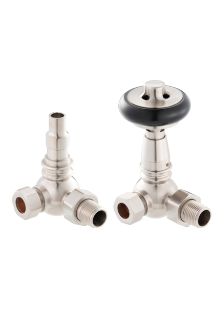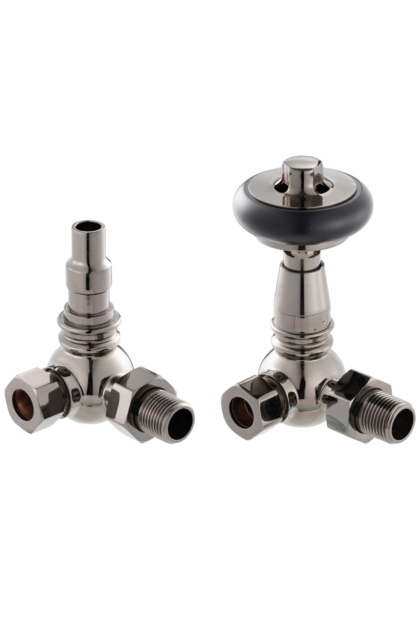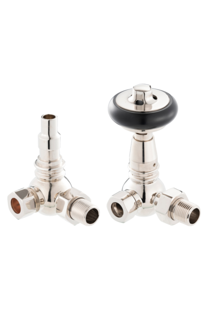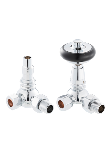 The UK15 is a traditional corner thermostatic valve with an FSC certified black wooden wheel design. The valves use a French thermostat unlike other valves which use inaccurate Chinese thermostats, this provides accurate readings so that you can rest easy that your rooms will be kept at the correct temperature.