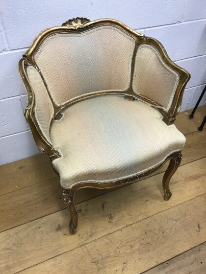 This is a stunning pair of gilt Victorian chairs. Take them as they are, unrestored for that well-worn look or get them restored in-house for an extra fee. The choice is yours. 80cm height, 65cm wide, 58cm deep, very comfortable shape and size. Seat is approx 45cm high