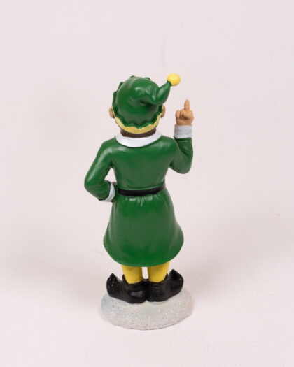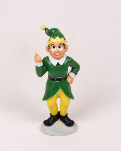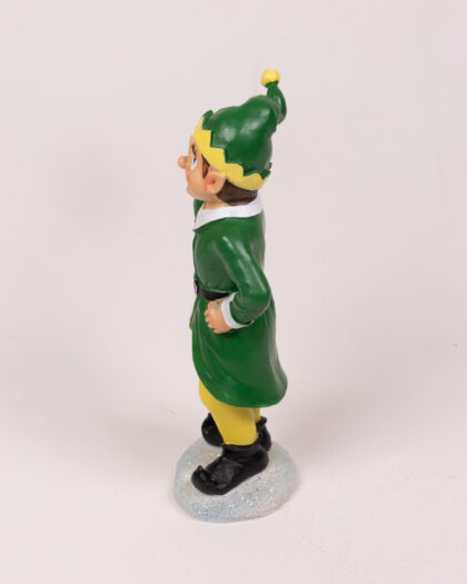 Add a touch of festive charm to your home with this delightful Christmas elf ornament. This quirky figurine features a cheerful elf dressed in a green coat, yellow trousers, and black shoes. His mischievous expression and playful gesture make him a fun addition to any Christmas display. H: 21cm W: 9cm D: 6cm