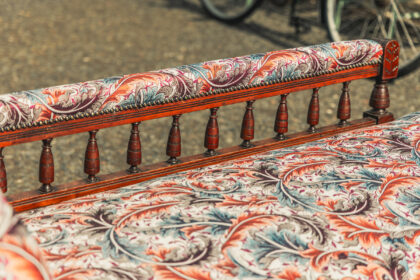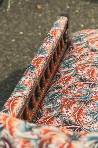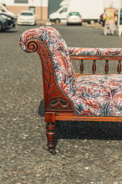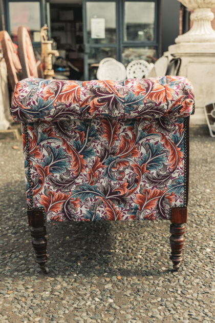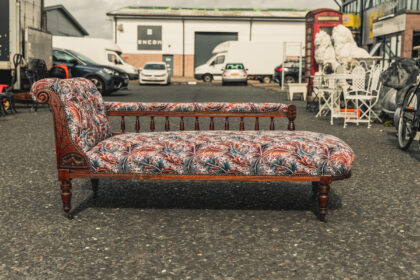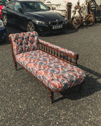 An Edwardian chaise which has been beautifully reupholstered.