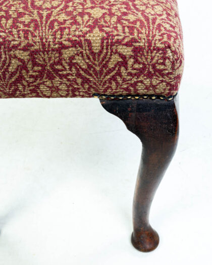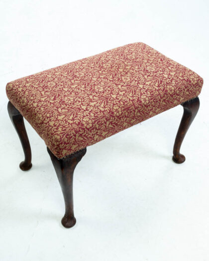 Victorian footstool upholstery in Bellflowers Weave and curved cabriole legs. Classic style for living room or bedroom.
