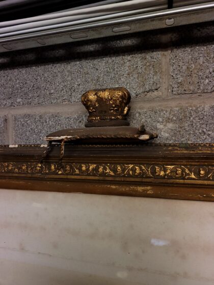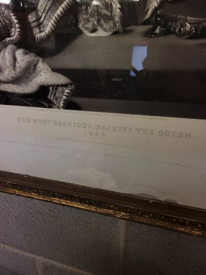 A large portrait of 'Her Most Gracious Majesty The Queen 1859' in a gilt frame taken from the Queen Street Police Station.
