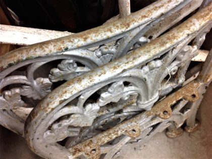 A pair of cast iron bench ends in good condition (in need of a fresh coat of paint).