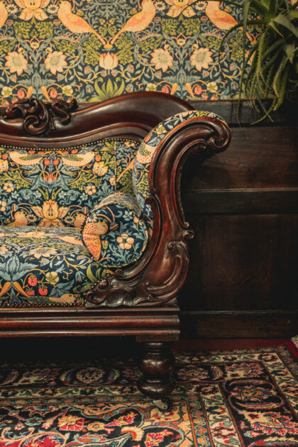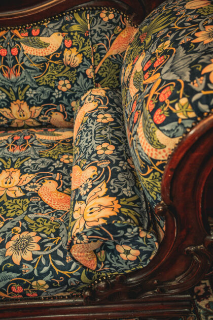 This Victorian Double Ended Chaise Lounge has been reupholstered in this stunning William Morris 'Strawberry Thief' Fabric. A chaise lounge or chaise longue is an upholstered sofa in the shape of a chair that is long enough to support the legs of the sitter.