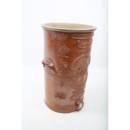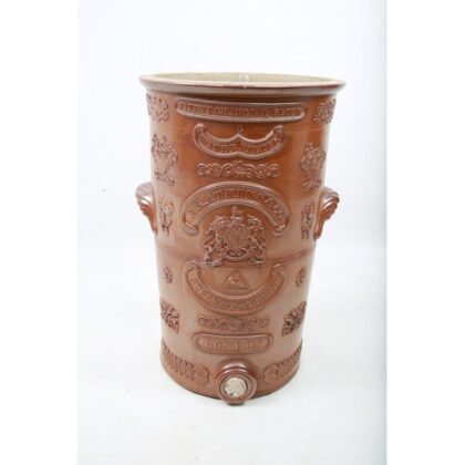 Atkins; a Victorian brown glazed earthenware twin handled water filter; 54cm high