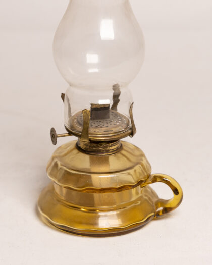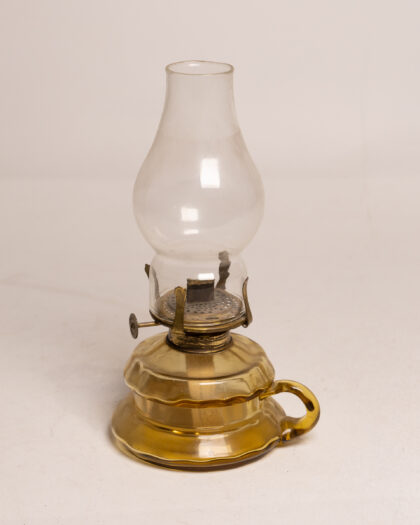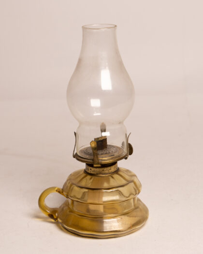 Victorian Brass Finger Oil Lamp with Glass Shade