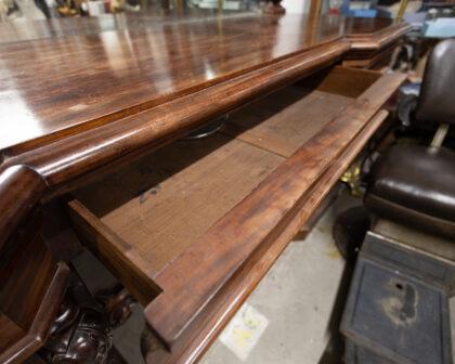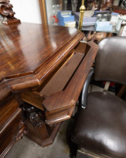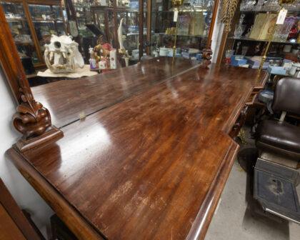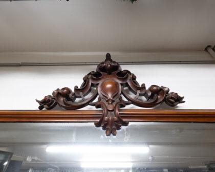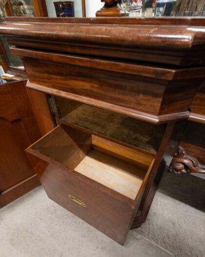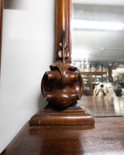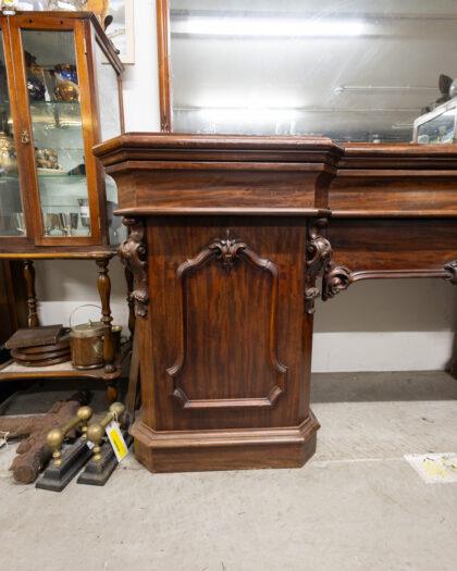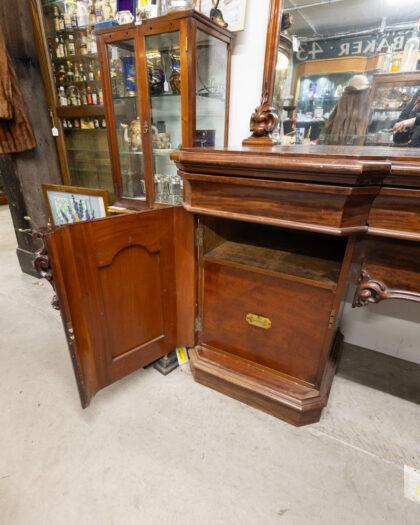Large Victorian mahogany sideboard with mirror. This mirror is a great example of mirrors that size in 1860 - 1880! The sideboard features 4 drawers and 2 cupboards.