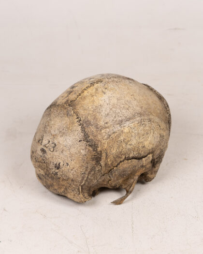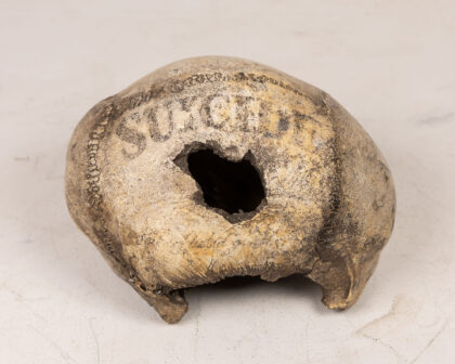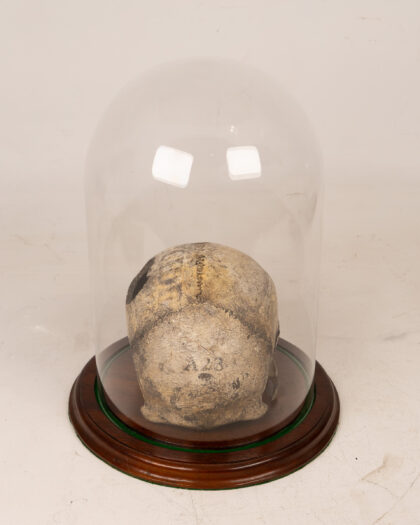 Victorian Pathology Human Skull Marked “Suicide” in Glass Dome