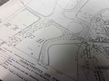 Please note that there are some very light red pencil markings on the lower right portion of the map (see photos)