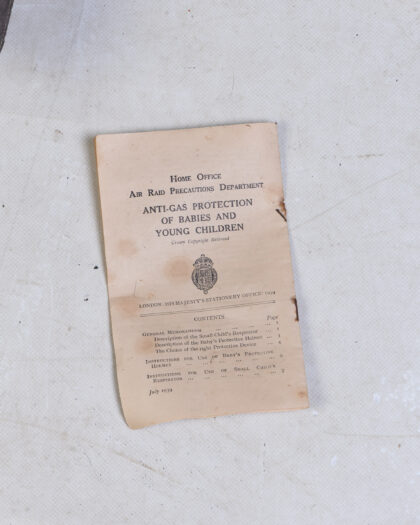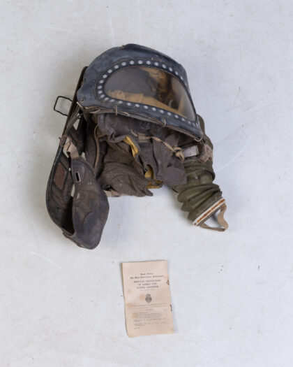 Rare Vintage 1939 Home Office ARP Anti-Gas Protective Helmet & Respirator with Original Booklet, a unique historical collectible.