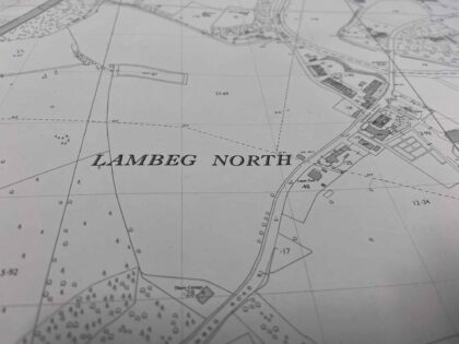 This detailed map covers Lambeg, Ballyskeagh and Tullynacross areas