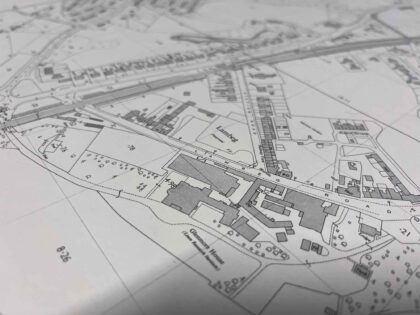 Landmarks include Glenmore House, St. Colmans Roman Catholic Church, Lambeg Church, and numerous factories, mills and schools