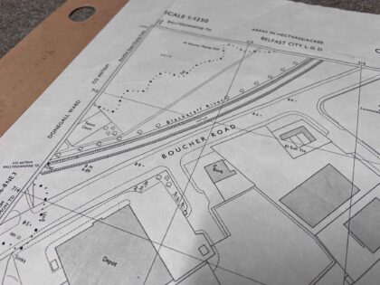 The map covers an area between Boucher Road and Lisburn Road, Belfast