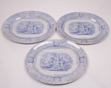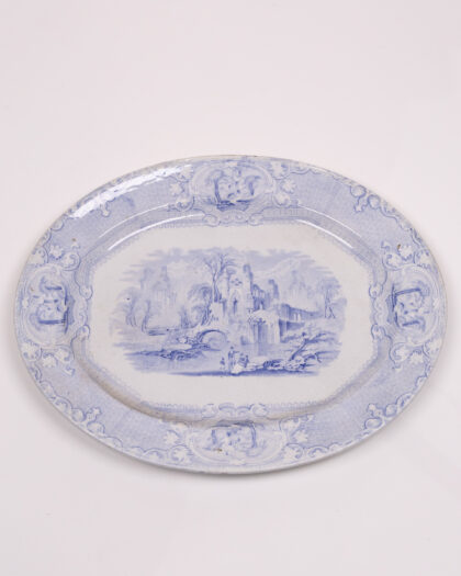 Vintage ‘Abbey’ Ironstone Oval Plate, Blue Transferware Scenic Decor