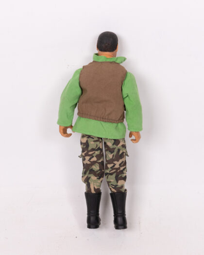 Vintage Action Man doll in camouflage trousers, green top, brown vest and black boots. Great condition for its age.