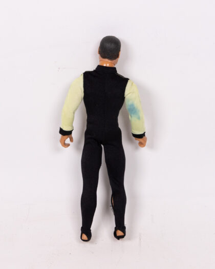 Vintage Action Man doll in black/cream wetsuit with zip detail. Good condition but has some minor wear and tear. Great gift for collectors!