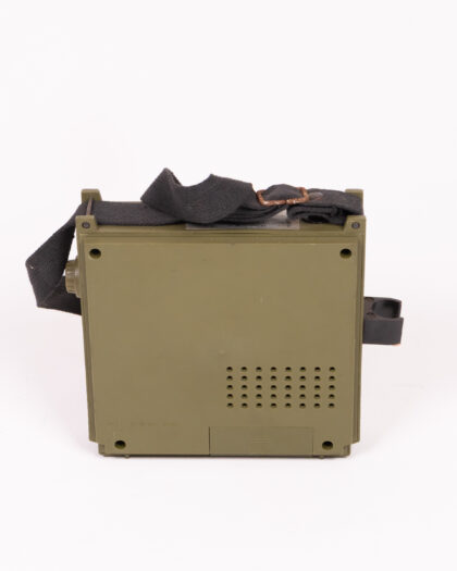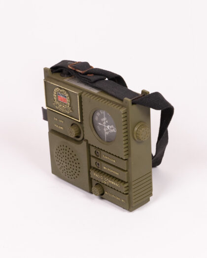 Vintage Action Man toy radio featuring plastic, metal, and fabric construction. Shows signs of wear. Great gift idea for military toy collectors.