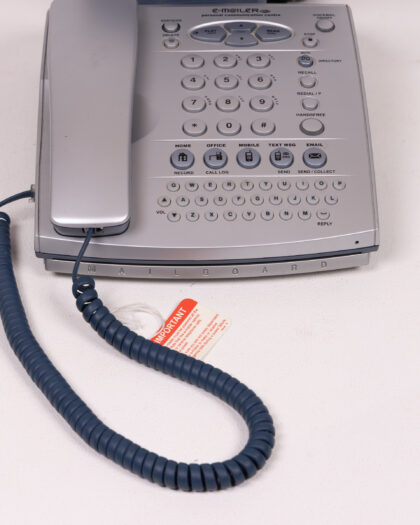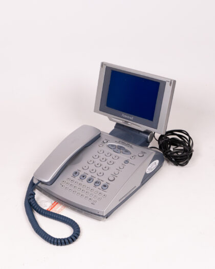 Vintage Amstrad e-m@iler Plus personal communication centre. This retro gadget combines a traditional telephone with email capabilities, featuring a built-in screen and QWERTY keyboard. Perfect for collectors of vintage electronics or those seeking a unique piece of tech history. The telephone is in good condition, but shows some signs of wear, including some light marks on the screen. Sold as seen, functionality not tested. A unique find for any vintage tech enthusiast. Features include: Email sending and receiving, SMS messaging, call logs and handsfree capabilities.