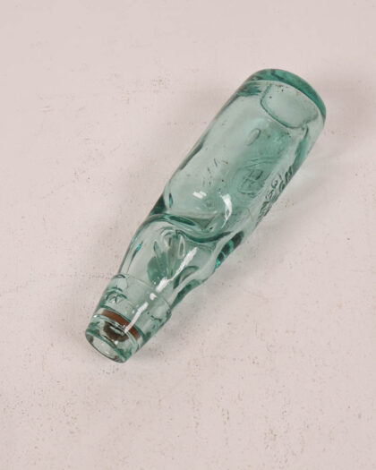 Vintage glass Codd bottle with internal marble closure. Clear light green glass. Some clouding of the glass inside. Good condition.