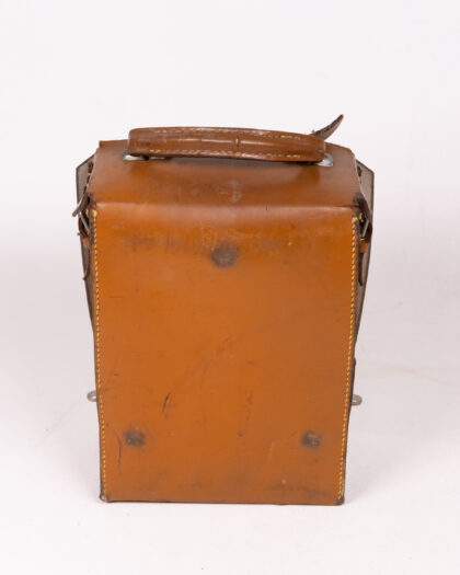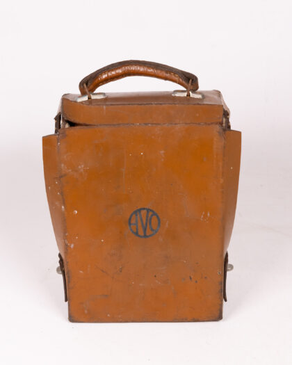 This is a vintage Avo Universal Avometer, a multitester used for measuring voltage, current, and resistance. The device is housed in a sturdy brown leather case, which shows signs of wear consistent with age. The Avometer itself features a black panel with various dials, scales, and terminals. The meter movement appears intact. The leather case has a flap that opens to allow access to the meter. Inside the case, there's evidence of the test leads. Condition: The leather case shows wear, scuffs, and aging. The meter may require calibration or restoration for accurate use. This Avometer is a vintage piece that would appeal to collectors of scientific instruments, electrical engineers, or those interested in vintage technology.