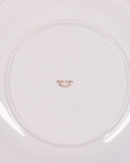 Discover this exquisite vintage bone china plate, proudly crafted in England. This elegant oval dish features a classic white base adorned with a beautiful gold floral pattern that gracefully encircles its scalloped rim and extends to the integrated handles. The reverse side bears the authentic 'Bone China England' mark, confirming its heritage. Perfect for adding a sophisticated touch to your home decor, whether displayed as an ornamental piece or used for serving. The plate is in good vintage condition, showing only minor surface blemishes and slight wear to the delicate gold trim, consistent with its age and charm.